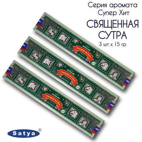 Набор Satya Священная Cутра серия Супер Хит - 3 упаковки по 15 гр - ароматические благовония, палочки, Super Hit Series Sacred Sutra - Сатия, Сатья 102257503358