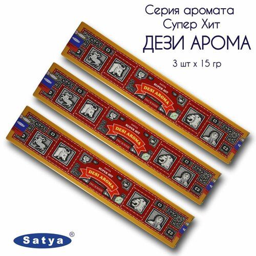Набор Satya Дези Арома серия Супер Хит - 3 упаковки по 15 гр - ароматические благовония, палочки, Super Hit Series Desi Aroma - Сатия, Сатья