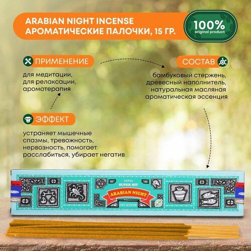 НАЙТИ ВЫГОДНЕЕ - Благовония Super Hit Arabian Night Incense (Супер Хит Арабская ночь) Ароматические индийские палочки для дома, йоги и медитации, Satya (Сатья), 15г
