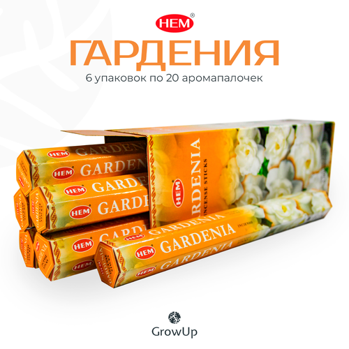 Набор HEM Гардения - 6 упаковок по 20 шт - ароматические благовония, палочки, Gardenia - Hexa ХЕМ 102334716363