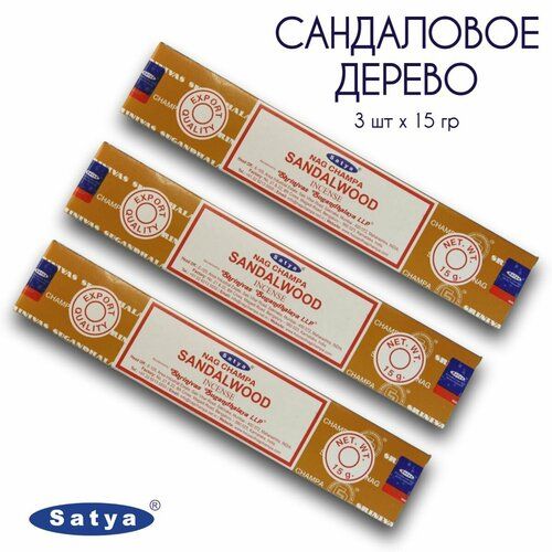 Набор Satya Сандаловое дерево Сандалвуд - 3 упаковки по 15 гр - ароматические благовония, палочки, Sandalwood - Сатия, Сатья 102429800589
