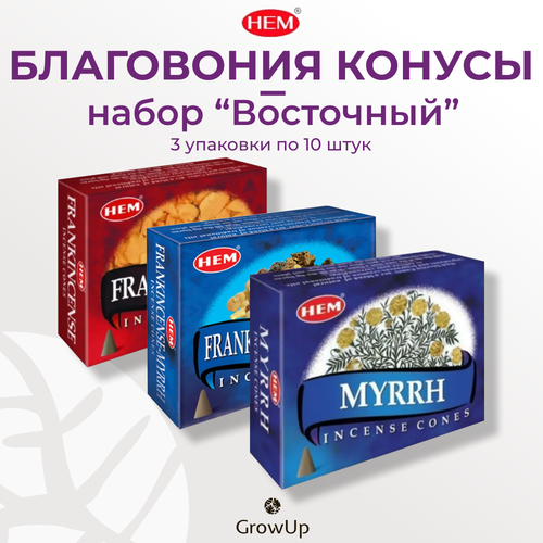 Набор HEM Восточный - 3 упаковки по 10 шт - ароматические благовония, конусовидные, конусы с подставкой - ХЕМ