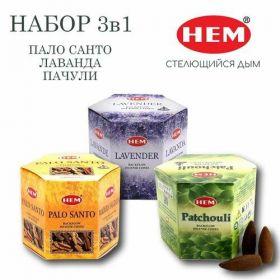 Набор HEM Лаванда, Пачули, Пало Санто - 3 упаковки по 40 шт - ароматические благовония, пуля, стелющийся дым - ХЕМ