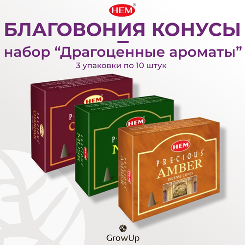 Набор №1 HEM Драгоценные ароматы - 3 упаковки по 10 шт - ароматические благовония, конусовидные, конусы с подставкой - ХЕМ 102432710798