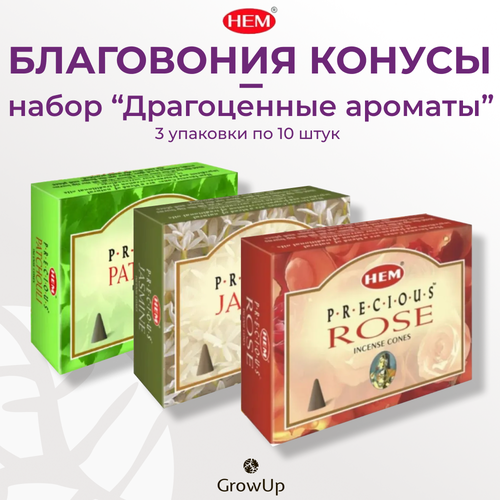 Набор №2 HEM Драгоценные ароматы - 3 упаковки по 10 шт - ароматические благовония, конусовидные, конусы с подставкой - ХЕМ 102432710799