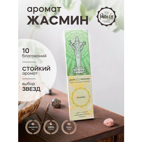 Благовония жасмин от PURE-IN из Индии. Натуральные индийские ароматические палочки премиум класса. Для дома, йоги, ароматерапии и медитации. Ритуалов и практик 102440007935