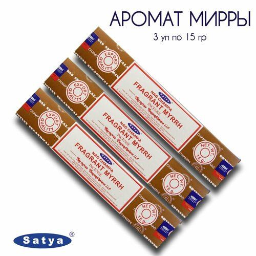 Набор Satya Аромат Мирры - 3 упаковки по 15 гр - ароматические благовония, палочки, Fragrant Myrrh - Сатия, Сатья