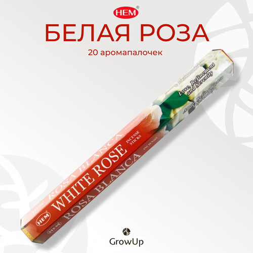 HEM Белая Роза - 20 шт, ароматические благовония, палочки, White Rose - Hexa ХЕМ 102750188103