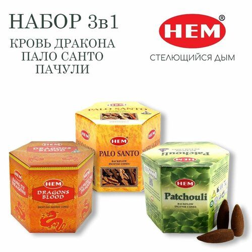 HEM Благовония конусы Opium, 3 уп. , 300 г, 40 шт., Кровь Дракона, Пало Санто, Пачули 102896482822