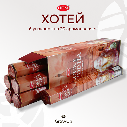 Набор HEM Хотей - 6 упаковок по 20 шт - ароматические благовония, палочки, Lucky Buddha - аромат теплый, дымный, насыщенный - Hexa ХЕМ 102912427303