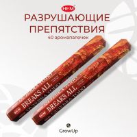 Набор HEM Разрушающие препятствия - 2 упаковки по 20 шт - ароматические благовония, палочки, Breaks All - аромат изысканный, нежный, сладковато-холодный - Hexa ХЕМ 102878808991
