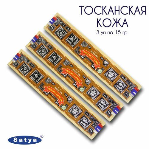Набор Satya Тосканская Кожа серия Супер Хит - 3 упаковки по 15 гр - ароматические благовония, палочки, Super Hit Series Tuscan Leather - Сатия, Сатья