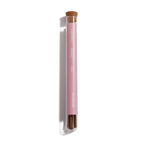 Палочки-благовония в стеклянной колбе QUARZ — продукт коллаборации с нишевым брендом HYPNOSE. Безосновные натуральные благовония с цветочно-древесной композицией, разработанной специально для QUARZ. В составе аромата ладан, роза и белый сандал. Сделаны вручную, в составе только натуральные компоненты.