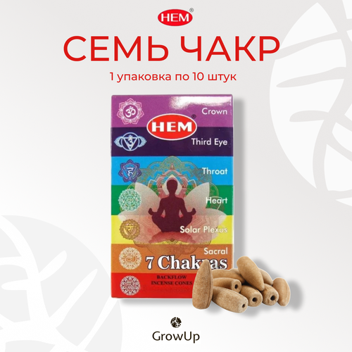 HEM 7 Чакр - 10 шт, ароматические благовония, пуля, стелющийся дым, 7 Chakras - ХЕМ 103150752946