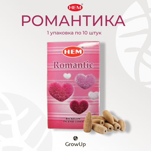 HEM Романтика - 10 шт, ароматические благовония, пуля, стелющийся дым, Romantic - ХЕМ 103155173612