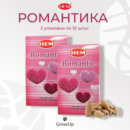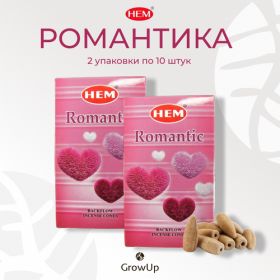 HEM Романтика - 2 упаковки по 10 шт - ароматические благовония, пуля, стелющийся дым, Romantic - ХЕМ
