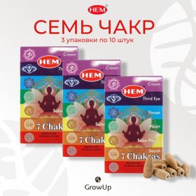 HEM 7 Чакр - 3 упаковки по 10 шт - ароматические благовония, пуля, стелющийся дым, 7 Chakras - ХЕМ 103155173617