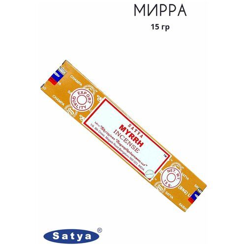 Найти - Индийские благовония Сатья Мирра (Satya Myrrh) натуральные ароматические палочки для дома, йоги, медитации, релакса и ароматерапии 15 гр