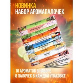 НАЙТИ ВЫГОДНЕЕ - Набор ароматических палочек Индокитай, 10 ароматов, 8 палочек в каждой из 10 упаковок, всего 80 палочек