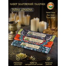Найти - Подарочный набор благовоний аромапалочки - подарок Тайна Дракона, 3 уп: Пало Санто, Белый Шалфей, Черный опиум, 45 гр