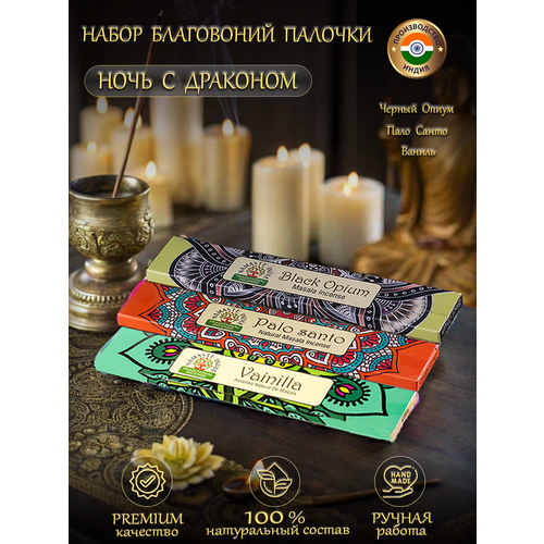 Найти - Подарочный набор благовоний аромапалочки Orkay подарок Ночь с Драконом, 3 уп: Пало Санто, Ваниль, Черный опиум, 45 гр