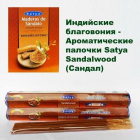 Найти - Индийские благовония Сандаловое Дерево (Sandalwood Satya), без угля, шестигранник, набор 2 уп. по 20 палочек