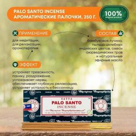 Благовония Пало Санто сочетают в своем букете сладкие, древесные и смолистые оттенки. Пало санто считается сильным средством от отрицательных энергий.