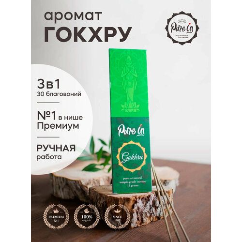 Найти - Набор благовоний гокхру от PURE-IN из Индии, 3в1. Натуральные индийские ароматические палочки премиум класса, 30шт. Для дома и медитации. Ритуалов и практик