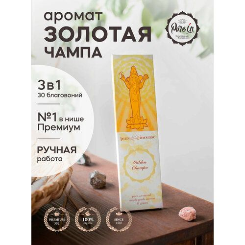 Найти - Набор благовоний золотая чампа от PURE-IN из Индии, 3в1. Натуральные индийские ароматические палочки премиум класса, 30шт. Для дома и медитации. Ритуалов и практик