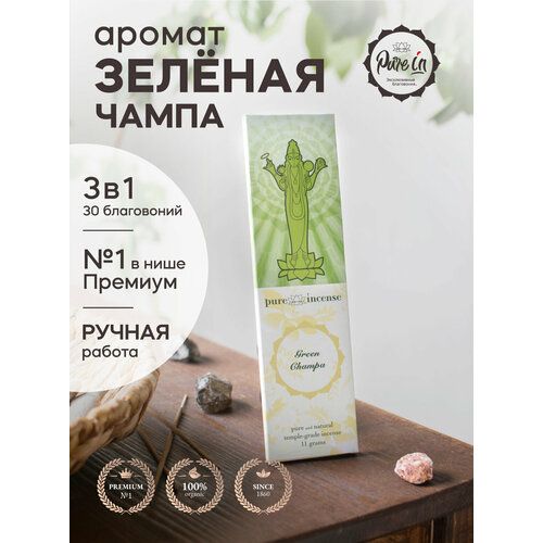 Найти - Набор благовоний зеленая чампа от PURE-IN из Индии, 3в1. Натуральные индийские ароматические палочки премиум класса, 30шт. Для дома и медитации. Ритуалов и практик
