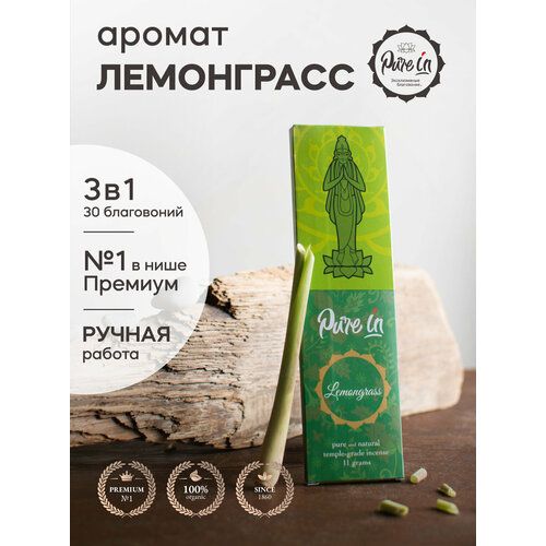 Найти - Набор благовоний лемонграсс от PURE-IN из Индии, 3в1. Натуральные индийские ароматические палочки премиум класса, 30шт. Для дома и медитации. Ритуалов и практик