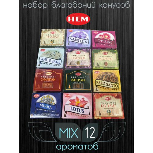 Найти - Набор благовоний конусы Хем (Hem) - 12 ароматов, 120 конусов и подставки