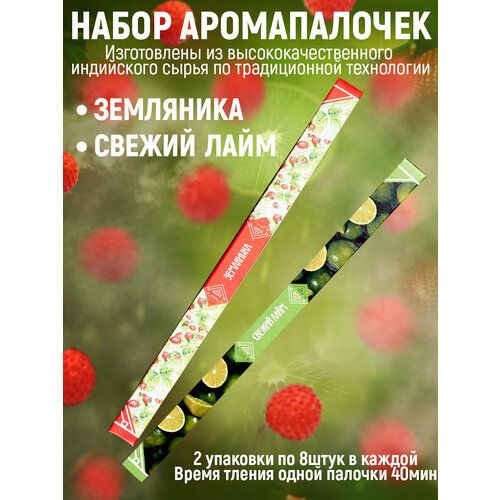 Найти - Ароматические палочки, благовония, набор из 2 упак по 8шт без подставки: Земляника, Свежий лайм.
