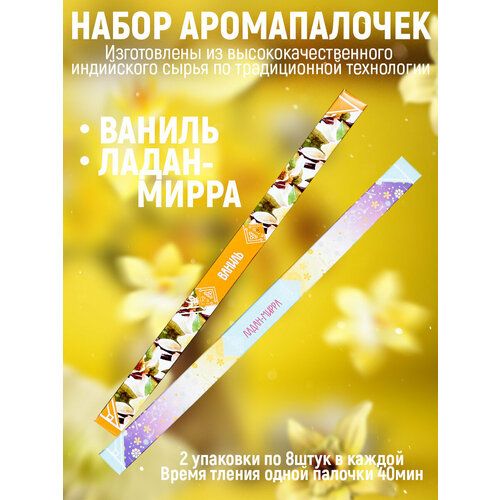 Найти - Ароматические палочки, благовония, набор из 2 упак по 8шт без подставки: Ваниль, Ладан