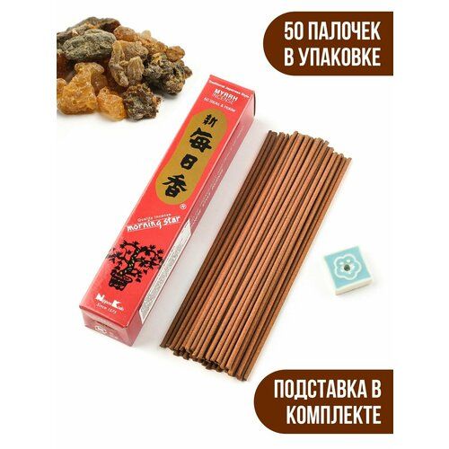 НАЙТИ ВЫГОДНЕЕ - Благовония японские NIPPON KODO Morning Star, аромат Мирра, палочки 50 шт, подставка в комплекте