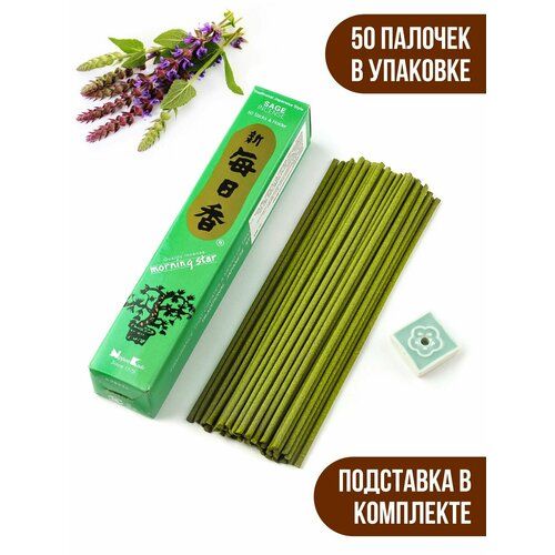 НАЙТИ ВЫГОДНЕЕ - Благовония японские NIPPON KODO Morning Star, аромат Шалфей, палочки 50 шт, подставка в комплекте