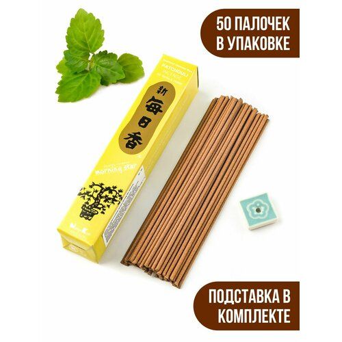 НАЙТИ ВЫГОДНЕЕ - Благовония японские NIPPON KODO Morning Star, аромат Пачули, палочки 50 шт, подставка в комплекте