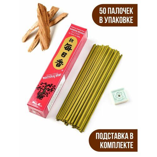 НАЙТИ ВЫГОДНЕЕ - Благовония японские NIPPON KODO Morning Star, аромат Сандал, палочки 50 шт, подставка в комплекте