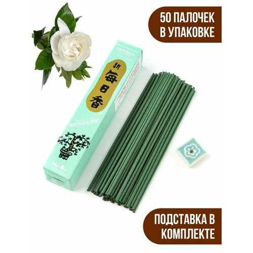 НАЙТИ ВЫГОДНЕЕ - Благовония японские NIPPON KODO Morning Star, аромат Гардения, палочки 50 шт, подставка в комплекте