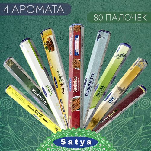 Найти - Набор аромапалочек, Благовония Satya (Сатья) для дома, 80 палочек, 4 аромата