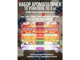 Аромапалочки Индокитай Лечебный, набор 10 уп. по 8 шт без подставки, разные ароматы, уголь 103747737429