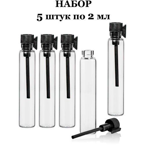 Найти - Фиолка / Пробник для духов и парфюма стекло. Крышка чёрный пластик 2 мл / ml. Набор из 5 штук