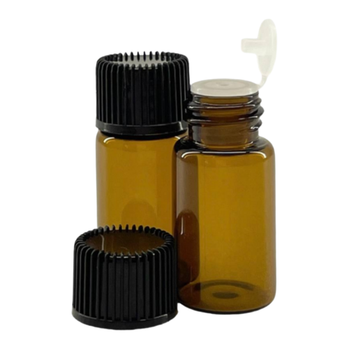 Флакон пробник 3 мл для эфирных масел выполнен из темного янтарного стекла, которое не пропускает солнечный свет и сохраняет качество эфирного масла на длительный срок. Черная крышка придает аксессуару стильный и современный вид.