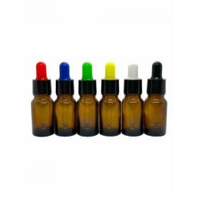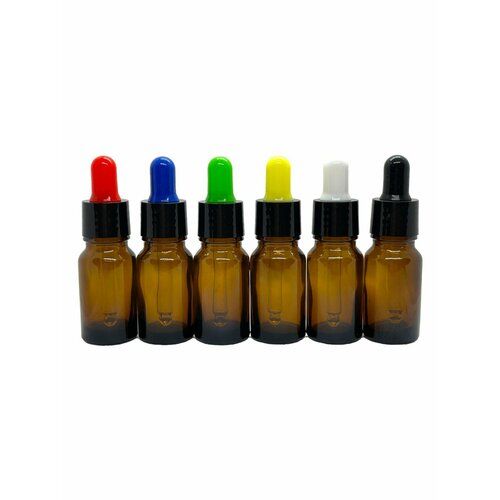 Найти - Набор пипеток для эфирных масел, флакон 10 мл, 6 штук, янтарное стекло, черная крышка, разноцветная груша