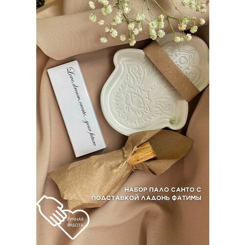 Набор для медитации Пало СантоДобро пожаловать в мир гармонии и внутреннего покоя Мы представляем вам набор для медитаций в прекрасной деревянной коробке. Внутри этого уникального набора вы найдете все необходимое для создания уютной атмосферы и полного расслабления. Наш набор твключает ароматические палочки Пало Санто, которые прекрасно дополняют атмосферу медитации. Их уникальный аромат способствует расслаблению и внутренней гармонии. Подставка для ароматических палочек в виде ладони Фатимы сделана из гипса вручную и подчеркнет вашу заботу о деталях. Мы верим, что наш набор для медитаций - идеальный выбор для тех, кто стремится к гармонии, покою и развитию своего внутреннего мира. Разместите его у себя дома или дарите близким людям, чтобы подарить им уют и возможность отключиться от суеты повседневной жизни. Создайте свою собственную оазис внутреннего спокойствия с нашим набором для медитаций.