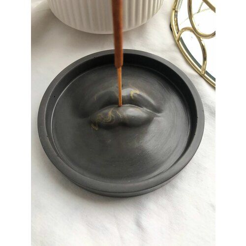 Найти - Подставка из гипса для благовоний, аромапалочек и Пало Санто Губы чёрные с золотом/Ароматерапия