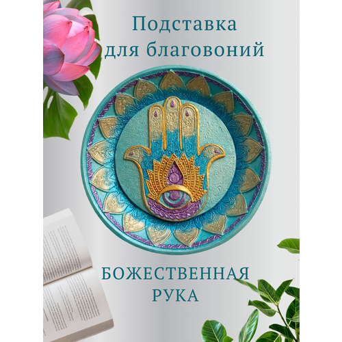 Найти - Подставка для аромапалочек Божественная рука DekorAng, гипс, ручная работа, ручная роспись, бирюзовая
