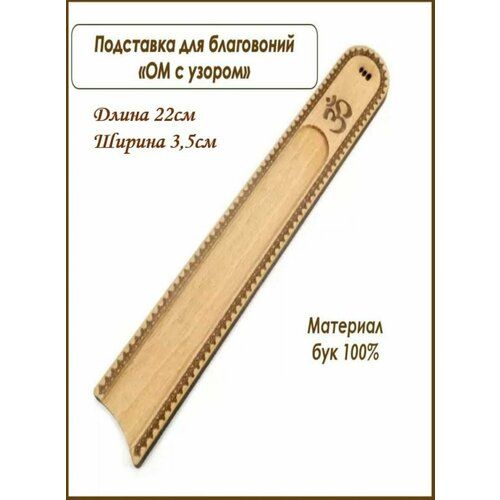 Подставка для благовоний ОМ с узором из бука имеет размеры 22х3.5см. Она выполнена в коричневом цвете и изготовлена из дерева, что гарантирует ее долговечность и экологичность.