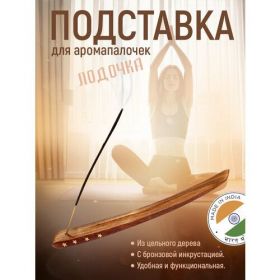 Подставка под благовония в виде лодочка с бронзовыми инкрустациями. Изделие изготовлено в Индии из натурального красного дерева. Подставка впишется в любой интерьер. Изготовленная из дерева красный полисандр, эта подставка легко моется и впечатляет своим элегантным дизайном. Практичная, удобная и эстетичная, она станет неотъемлемым аксессуаром для создания уюта в вашем пространстве. Наша подставка для благовоний обеспечивает чистоту и организованность в вашем пространстве. Простота использования — просто поместите благовоние и наслаждайтесь ароматом. Ее стильный и минималистичный дизайн легко сочетается с любым декором интерьером, делая ее отличным дополнением к вашему домашнему обстановке. Это качественное и стильное решение идеально подходит для любителей арома пало санто и тех, кто ценит успокаивающие ароматы. Можно также использовать как держатель аромалампа стелющийся дым или свечей для благовоний.