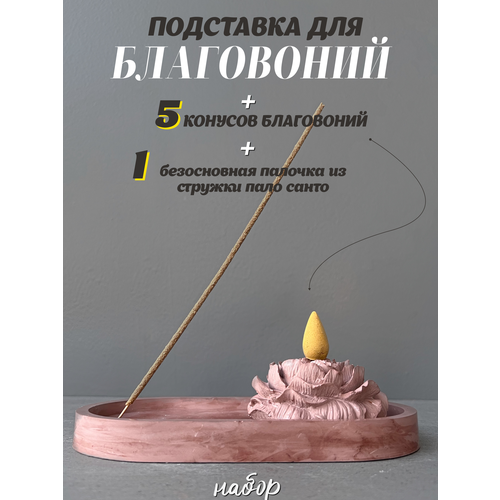 Найти - Набор подставка для благовоний Пало санто, гипсовый, коричневый, стелящийся дым